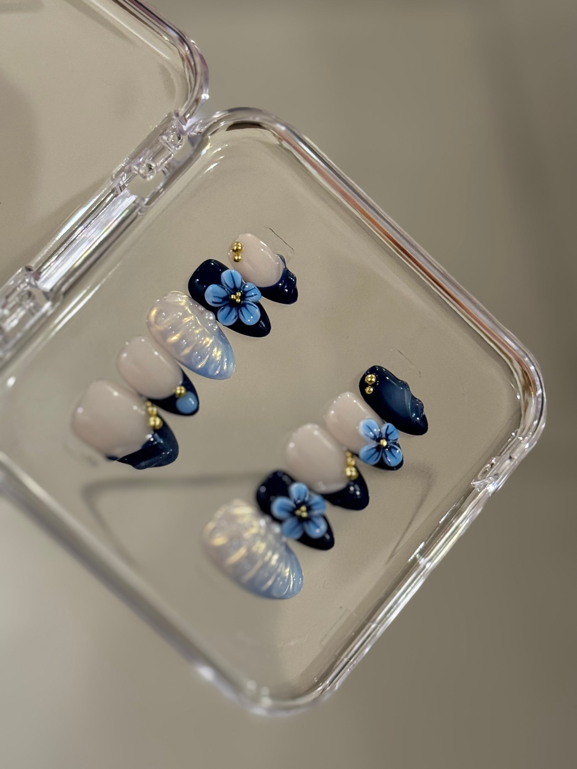 N126 Blue 3D Nails Set