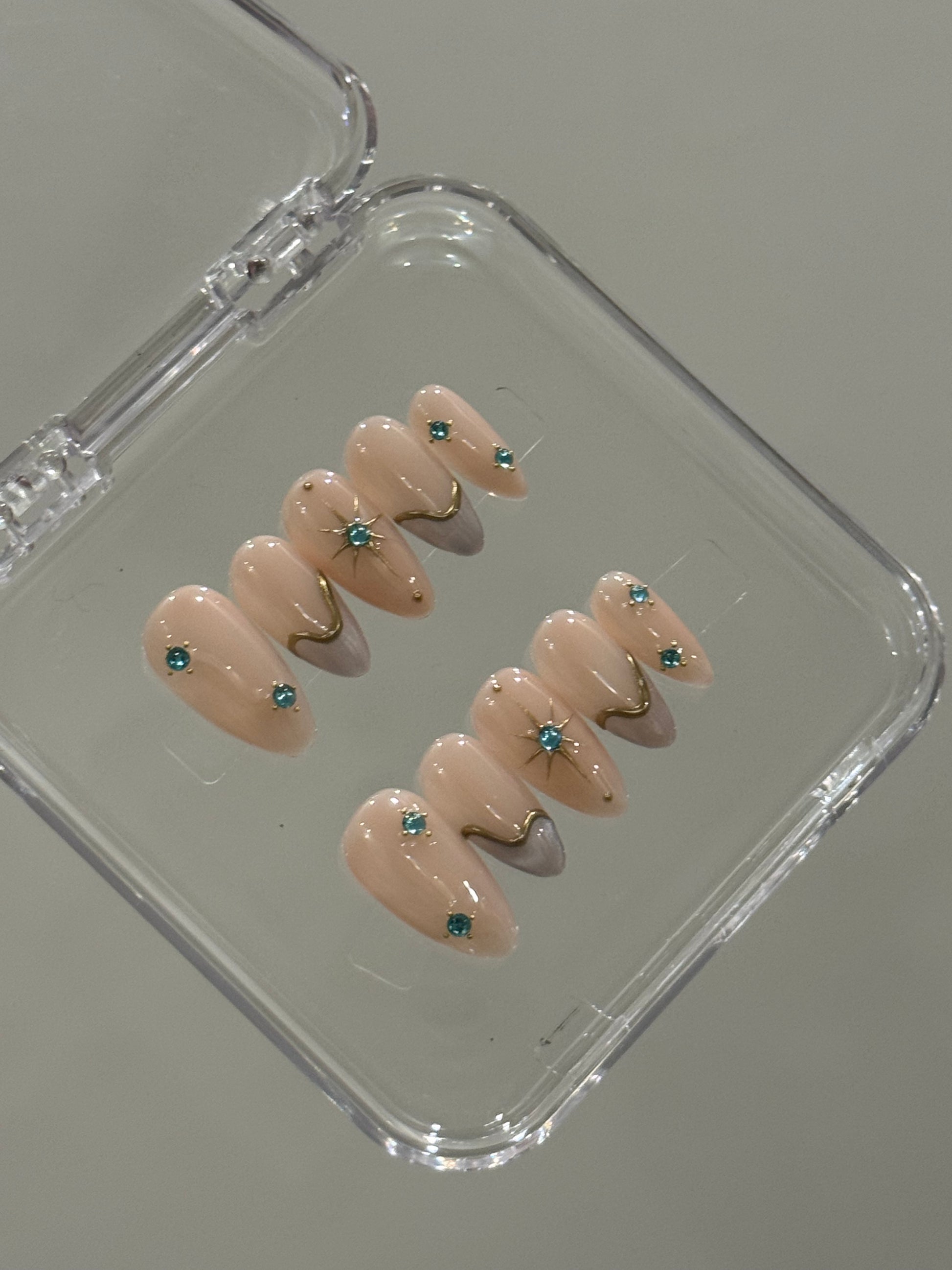 N196 Aqua Rhinestones Nails