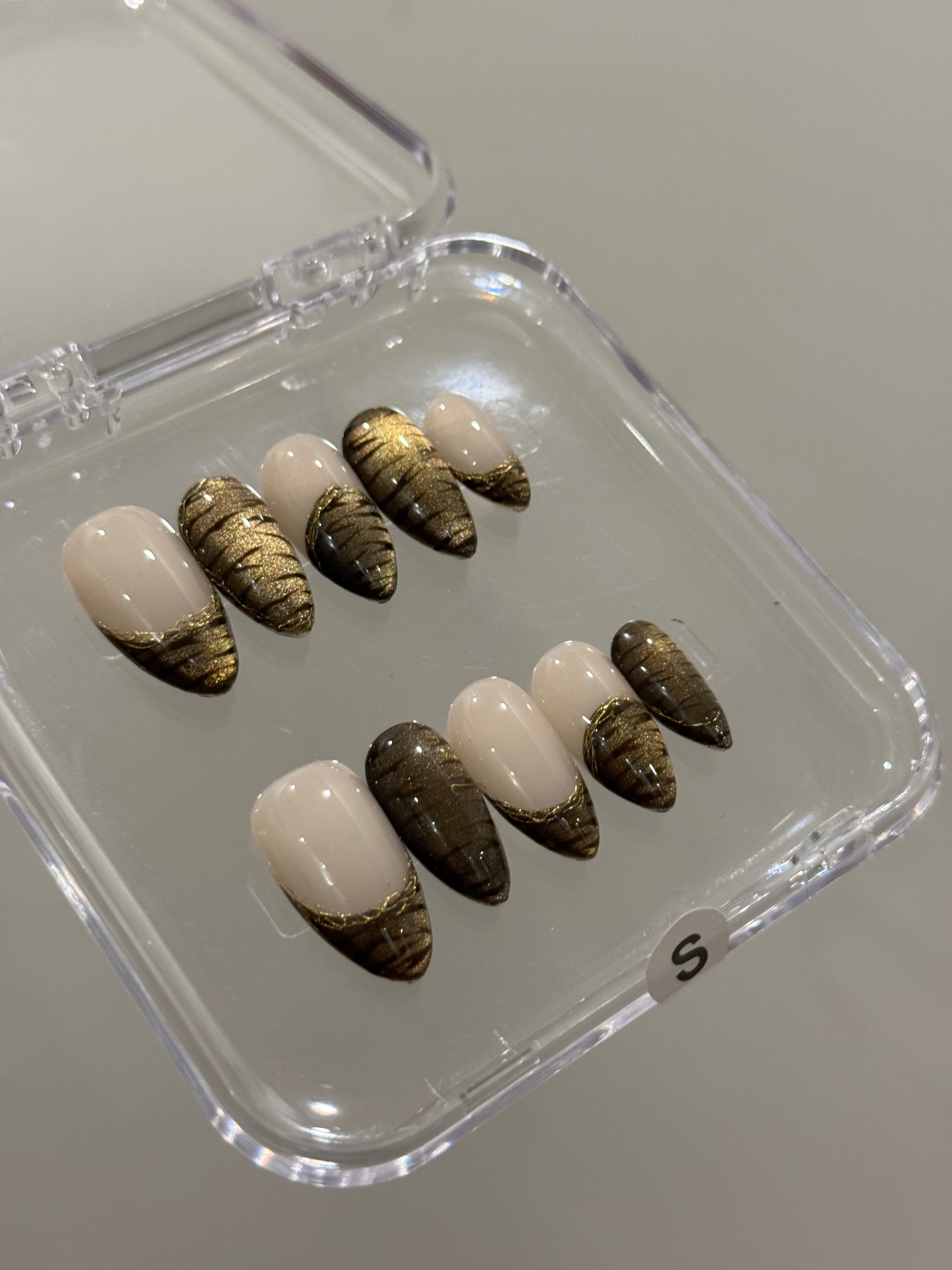 N208 Brown Stripes Cateye Nails